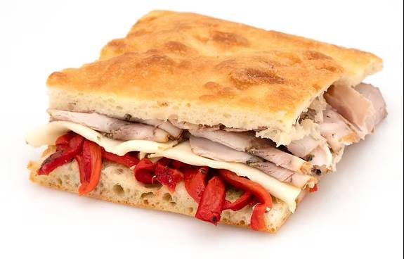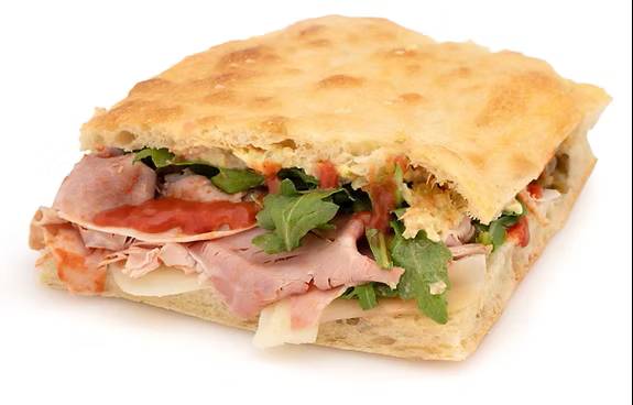 This one is made from porchetta, roasted peppers, and mozzarella cheese. More than the others, this one feels very balanced. The porchetta, a form of roast pork used here as a deli meat, is sliced thickly, and the peppers are applied as a dense spread. The sumptuous meat and vegetable on the focaccia makes the Roma feel like a full meal complete with protein, carbs, and fiber. The flavor of the sandwich is commensurately complex and layered. Other than that, there’s not much to say about the Roma; it’s just plain good.